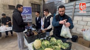 في أحد أزقة مخيم البص، يجتمع متطوعون حول صناديق خضار ومواد غذائية، يعملون على تجهيز سلال ستصل لاحقًا إلى نحو 250 عائلة داخل المخيم. هنا، لا يبدو العمل مجرد نشاط موسمي، بل امتدادًا لمبادرة بدأت قبل تسع سنوات وما زالت مستمرة رغم التحديات.